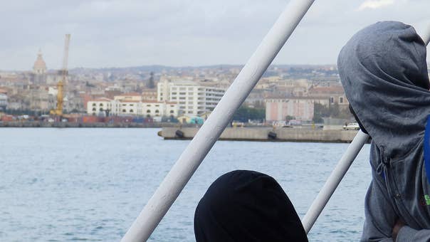 Πρόσφυγες και μετανάστες που φτάνουν στην Κατάνια στη Σικελία