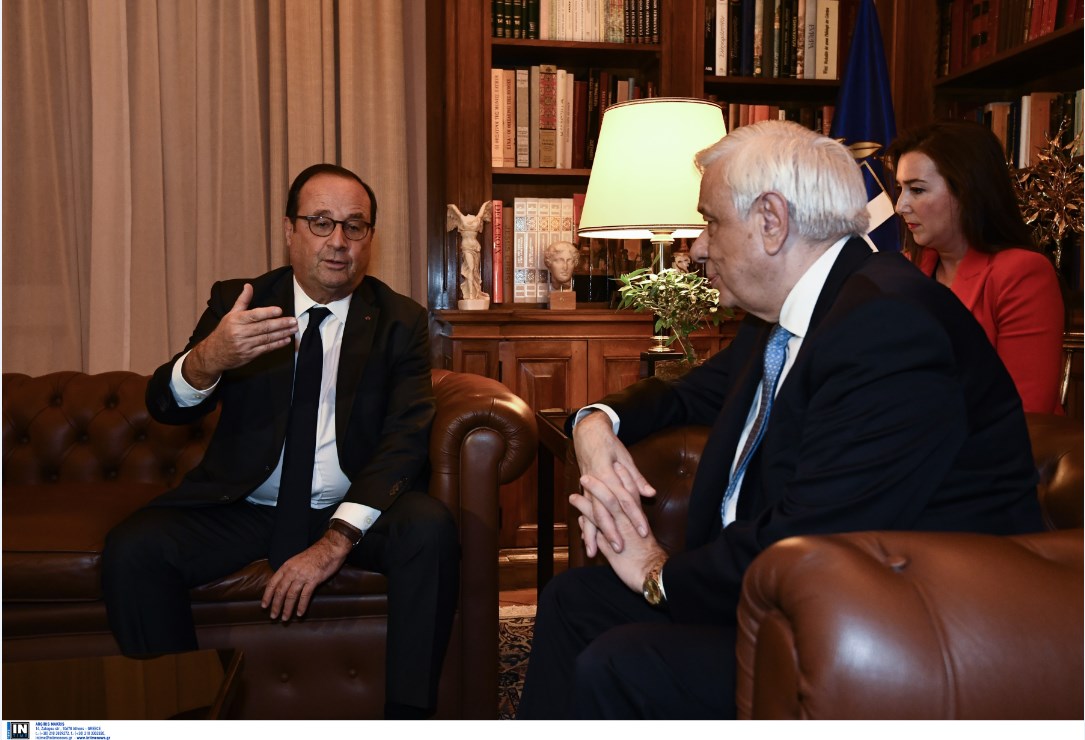 Από την πλευρά του, ο Πρόεδρος της Ελληνικής Δημοκρατίας κ. Προκόπης Παυλόπουλος τόνισε ότι «O Φρανσουά Ολάντ ήταν, είναι και θα παραμείνει ένας μεγάλος Φίλος της Ελλάδας αλλά και μια ηγετική πολιτική φυσιογνωμία στον Ευρωπαϊκό χώρο», ενώ υπογράμμισε και την πολύτιμη συμβολή του πρώην Υπουργού Οικονομικών της Γαλλίας κ. Μισέλ Σαπέν, ο οποίος συνόδευε τον κ. Ολάντ στο Προεδρικό Μέγαρο.