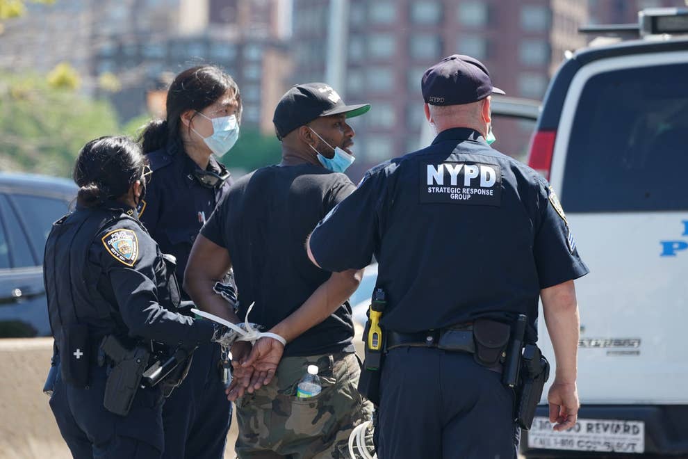 Η αστυνομία συλλαμβάνει διαδηλωτές που περπατούν στο FDR Drive, σταματώντας την κυκλοφορία, καθώς διαδηλώνουν για τη δολοφονία του Τζορτζ Φλόιντ στην κράτηση της αστυνομίας της Μινεάπολης σε διαδήλωση στη Νέα Υόρκη, στις 30 Μαΐου.