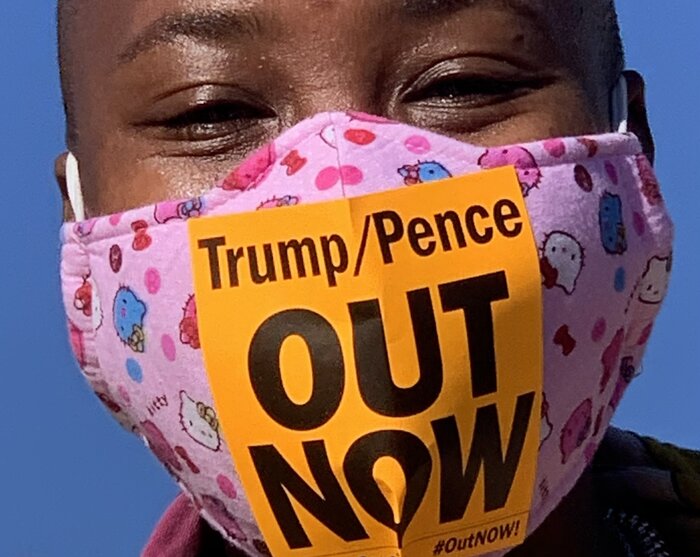 Στο DC, η Sonja Spoo , ακτιβίστρια για τα αναπαραγωγικά δικαιώματα, είπε: "Ο Ντόναλντ Τραμπ αφήνει το αξίωμά του και δεν υπάρχει επιλογή γι 'αυτόν - είναι η επιλογή μας - και τον ψηφίζουμε να βγει στις 3 Νοεμβρίου."