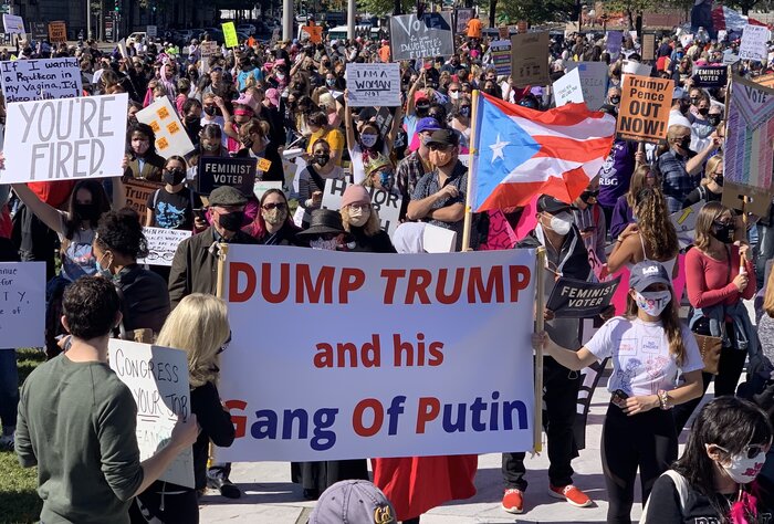 Οι προεδρικές εκλογές και ο διορισμός του δικαστή Amy Coney Barrett για το Ανώτατο Δικαστήριο είναι μερικά από τα ζητήματα που διαμαρτύρονται. Ο Μπάρετ θα γεμίσει την έδρα του αείμνηστου δικαστή Ρουθ Μπάντερ Γκίνσμπουργκ.