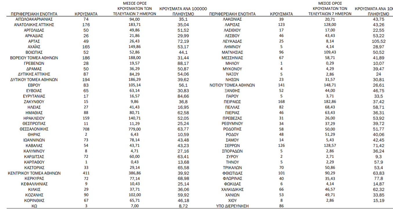 Δείτε τον πίνακα με τα κρούσματα πανελληνίως:
