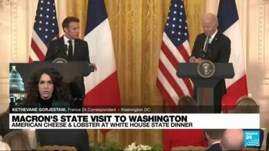 «Απόψε γιορτάζουμε τη διαρκή συμμαχία μεταξύ Γαλλίας και Ηνωμένων Πολιτειών», είπε ο Μπάιντεν καθώς οι καλεσμένοι τσουγκρίζουν τα φλάουτα της σαμπάνιας τους. «Ζήσε στη Γαλλία και ο Θεός να ευλογεί την Αμερική».