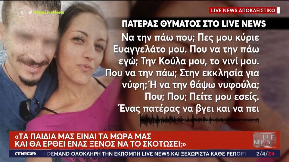 Μου λέει «τέλος μπαμπά, τελείωσα με τον Θανάση, από και πέρα τέλος, μόνη μου», λέω: «βρε αγάπη μου έλα κορίτσι μου στο σπίτι να μείνεις ένα μήνα, έλα να είμαστε μαζί», «όχι μπαμπά».
