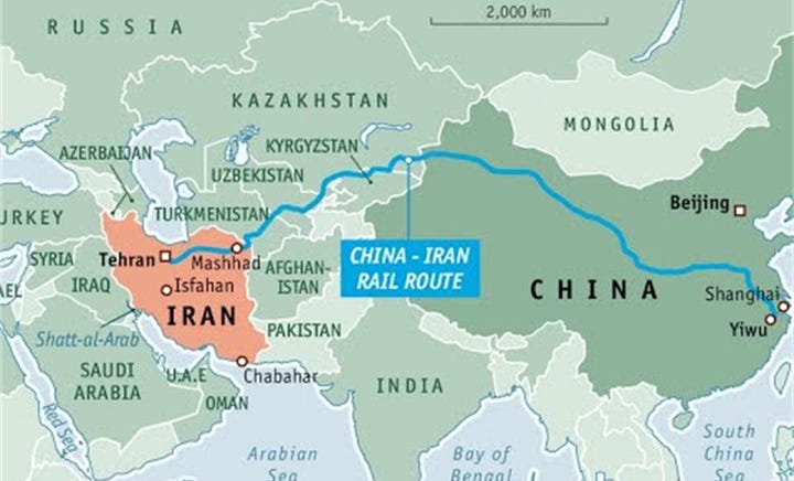 Ο σιδηρόδρομος στον οποίο αναφερόταν ο Wilkerson είναι ο Σιδηρόδρομος Κίνας-Ιράν, γνωστός και ως σιδηροδρομικός διάδρομος Κίνας-Ιράν ή σιδηροδρομική σύνδεση Xi'an-Τεχεράνης, μέρος της Πρωτοβουλίας «Μία Ζώνη, Ένας Δρόμος» της Κίνας. Ο σιδηρόδρομος κατασκευάστηκε από την Κίνα ως ο βασικός χερσαίος εμπορευματικός διάδρομος (συνολικά περίπου 10.400 χλμ. / 6.500 μίλια από το Xi'an στην Κίνα μέχρι το λιμάνι Aprin κοντά στην Τεχεράνη), χρηματοδοτούμενος και υποστηριζόμενος σε μεγάλο βαθμό από την Κίνα.